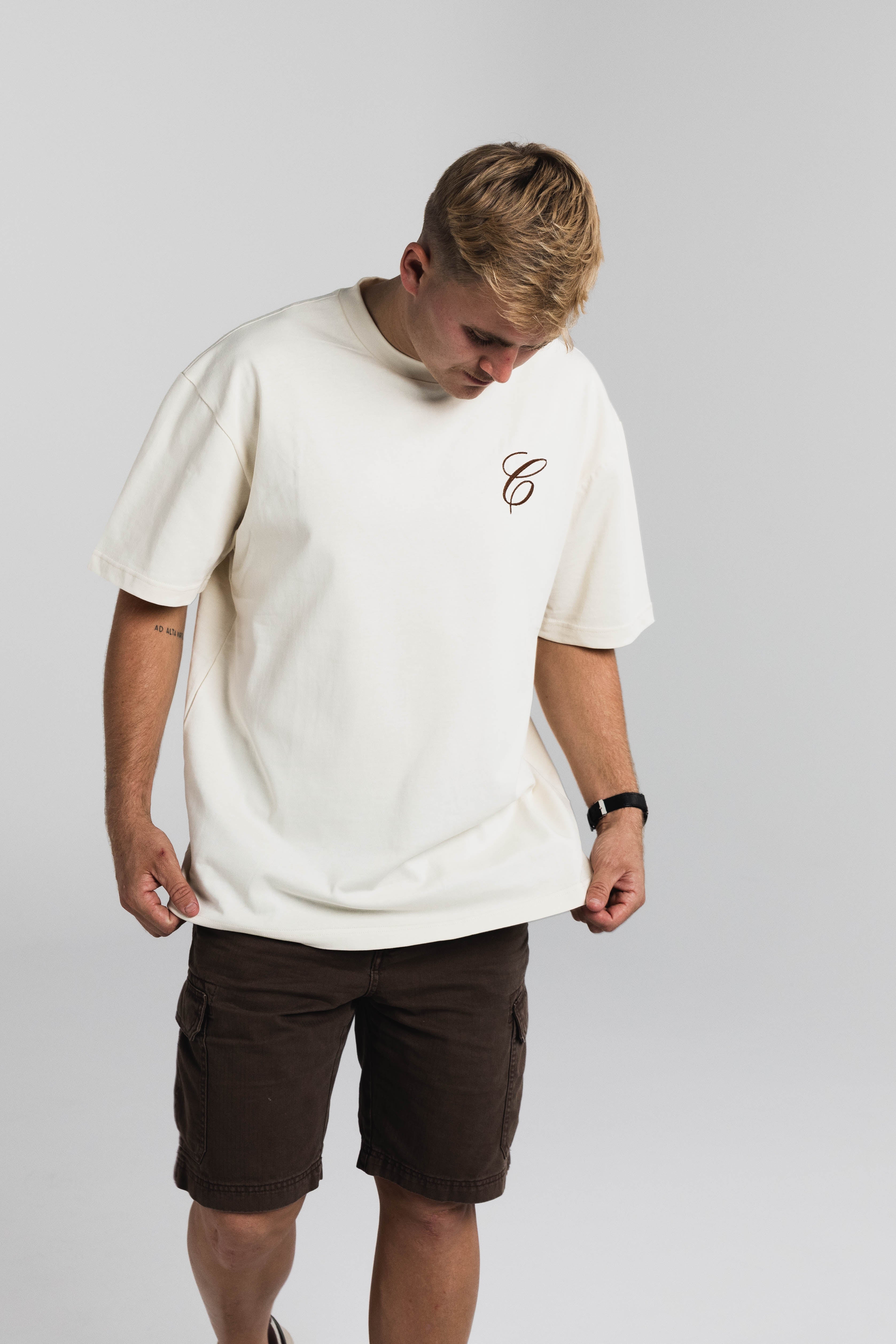 Dual Cursive Cream Tee - Oversized