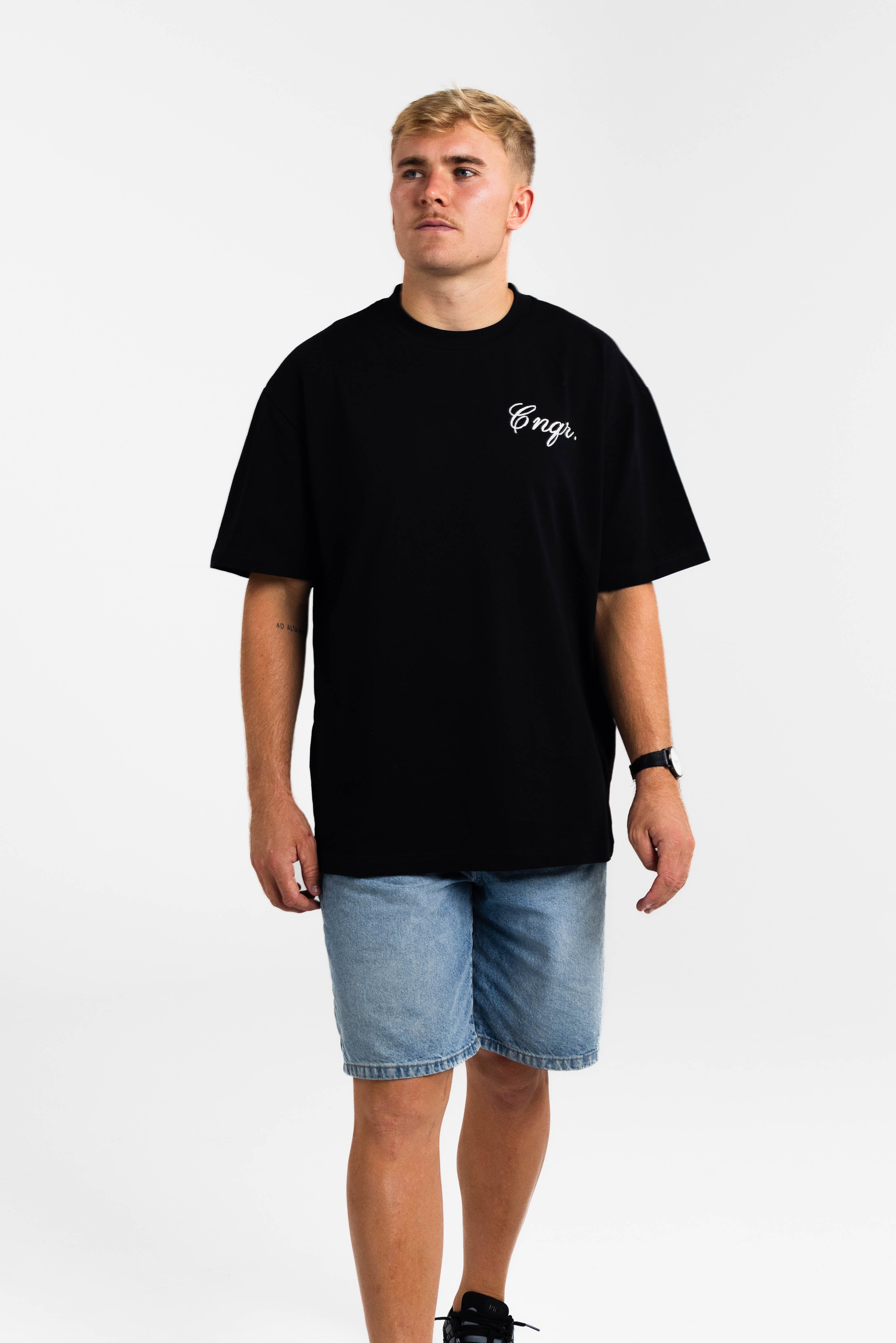 Full Cursive Black Tee - Oversized